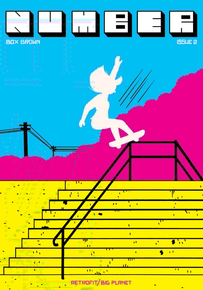 The second volume of Box Brown's new ongoing anthology series, Number! This includes two new stories, "Sk8rh8r" and "Elroy Mirrors' Big Score". In "Sk8rh8r", 33-year-old Rose skateboards drunk to grab some delicious burgers and runs into both Buddy Bob and the police, while in "Elroy Mirrors' Big Score", Elroy tries to build his documentary film career while dealing with his more successful friends, the strange subjects of his films, and his direction in life.