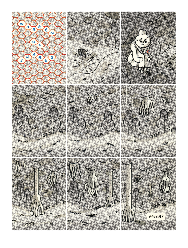 Featuring roving gangs of drug-addled rabbits, Guns N' Roses in their Jewish deli days, ghost stories and talking dogs with nothing to say, Butter and Blood is packed cover-to-cover with beautiful drawing, dumb ideas and funny, funny jokes.